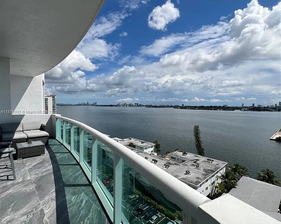 A fully renovated penthouse with 13-foot ceilings and 360-degree panoramic views of the bay and South Beach skyline.